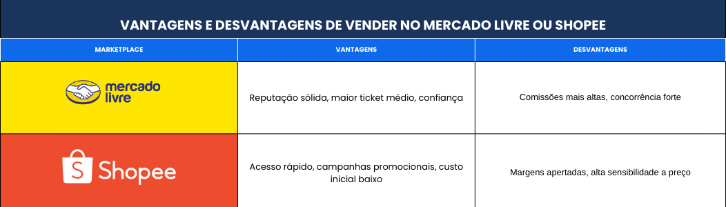 Decidir entre vender no Mercado Livre ou Shopee não é apenas escolher uma plataforma, mas alinhar estratégia, operação e fornecedores.