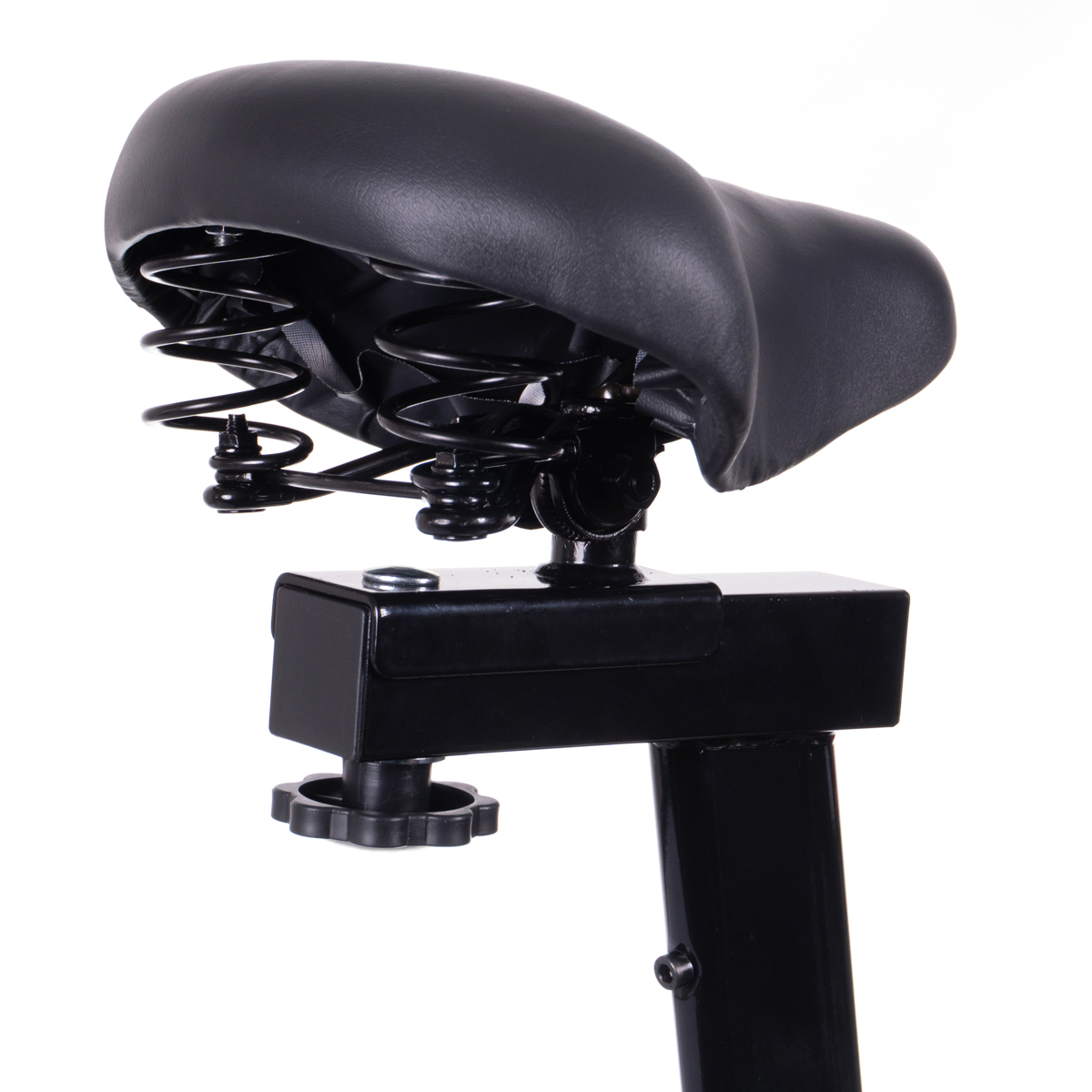 Além disso, o volante de inércia de 13 kg entrega pedalada mais contínua e estável, melhorando a sensação de controle e reduzindo trancos durante o exercício. Para completar, o assento em tecido PU tem boa elasticidade e possui área perfurada no centro, o que melhora a ventilação e aumenta o conforto em treinos longos.