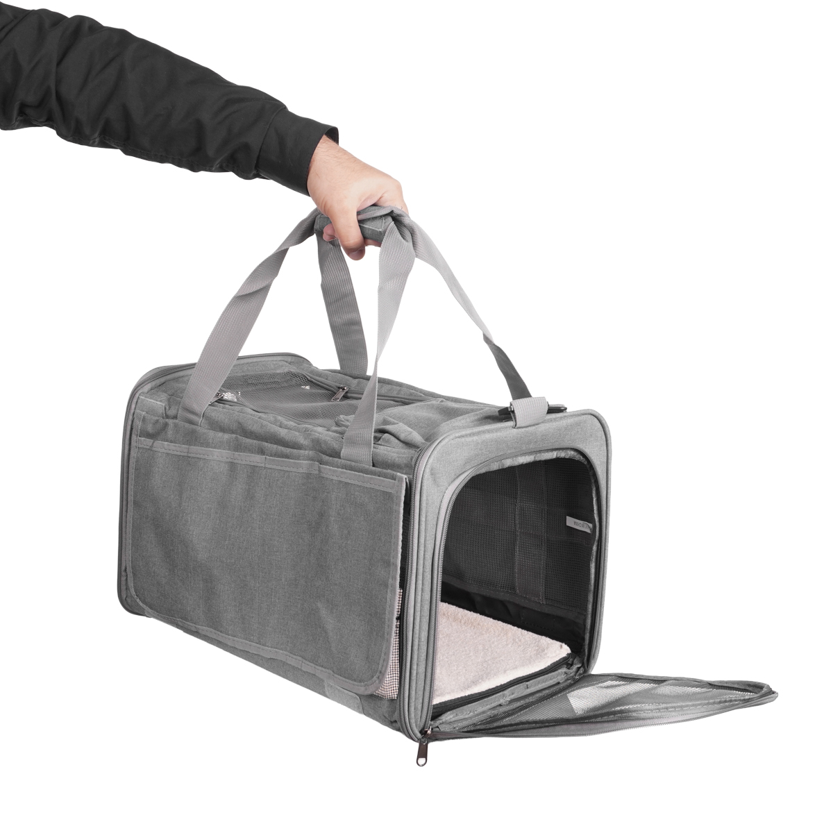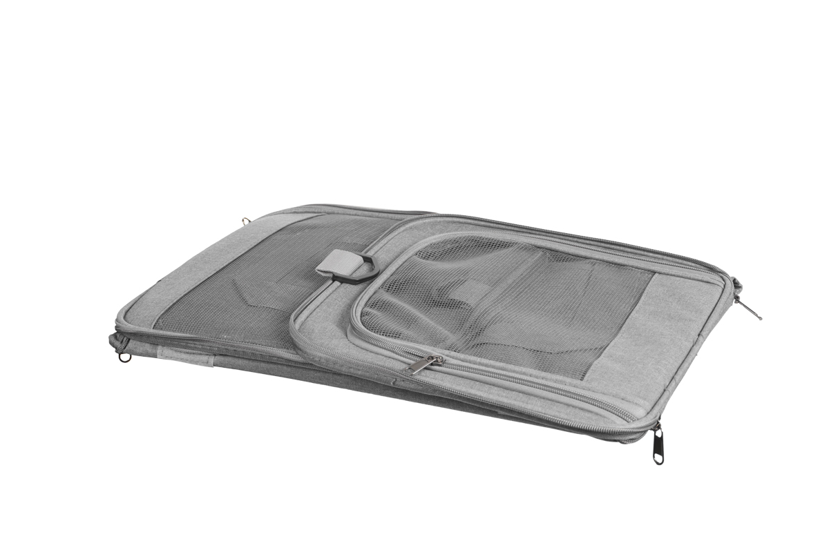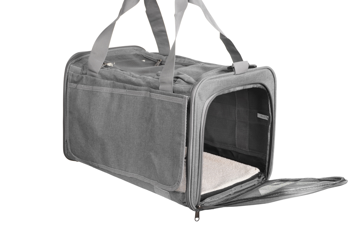 A bolsa de transporte para pets em tecido Oxford combina design funcional e detalhes pensados para o bem-estar do animal e a praticidade do tutor: