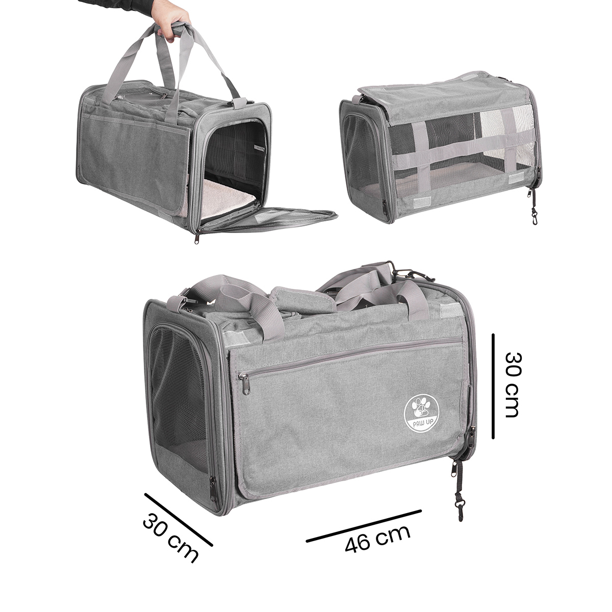 Uso multifuncional: ideal como bolsa transportadora de animais para passeios urbanos, viagens de carro, ônibus ou avião (consultar regras da companhia aérea).