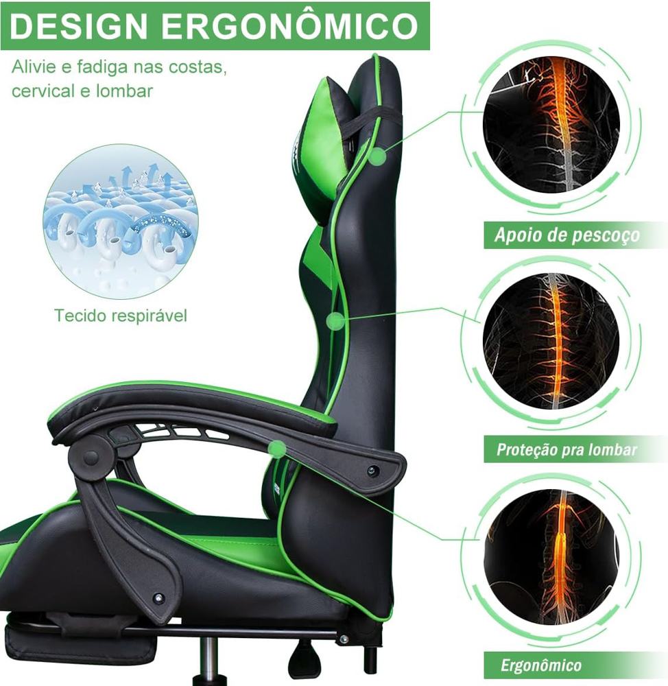 - Cadeira gamer com design ergonômico 0°a 150° reclinável.