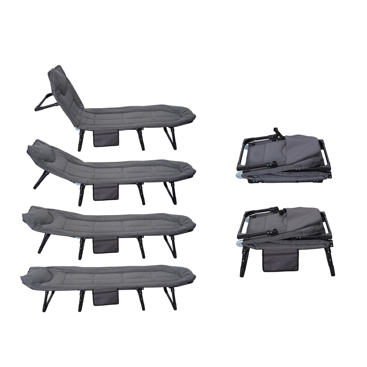Cama Dobrável Portátil em Aço com Colchão Integrado Reforçado Cinza Escuro