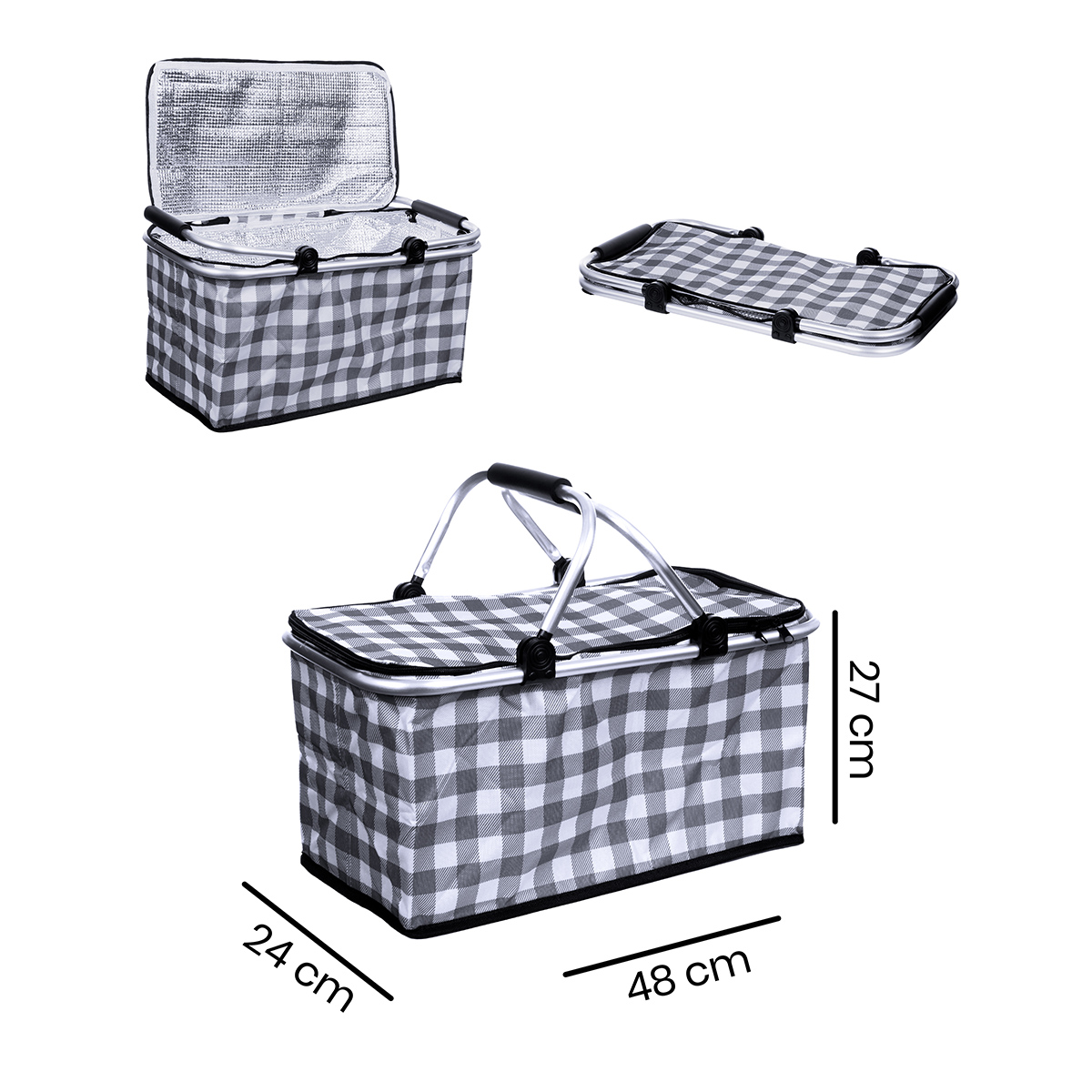 Cesta de Piquenique Térmica Dobrável Preta e Branca – 30L