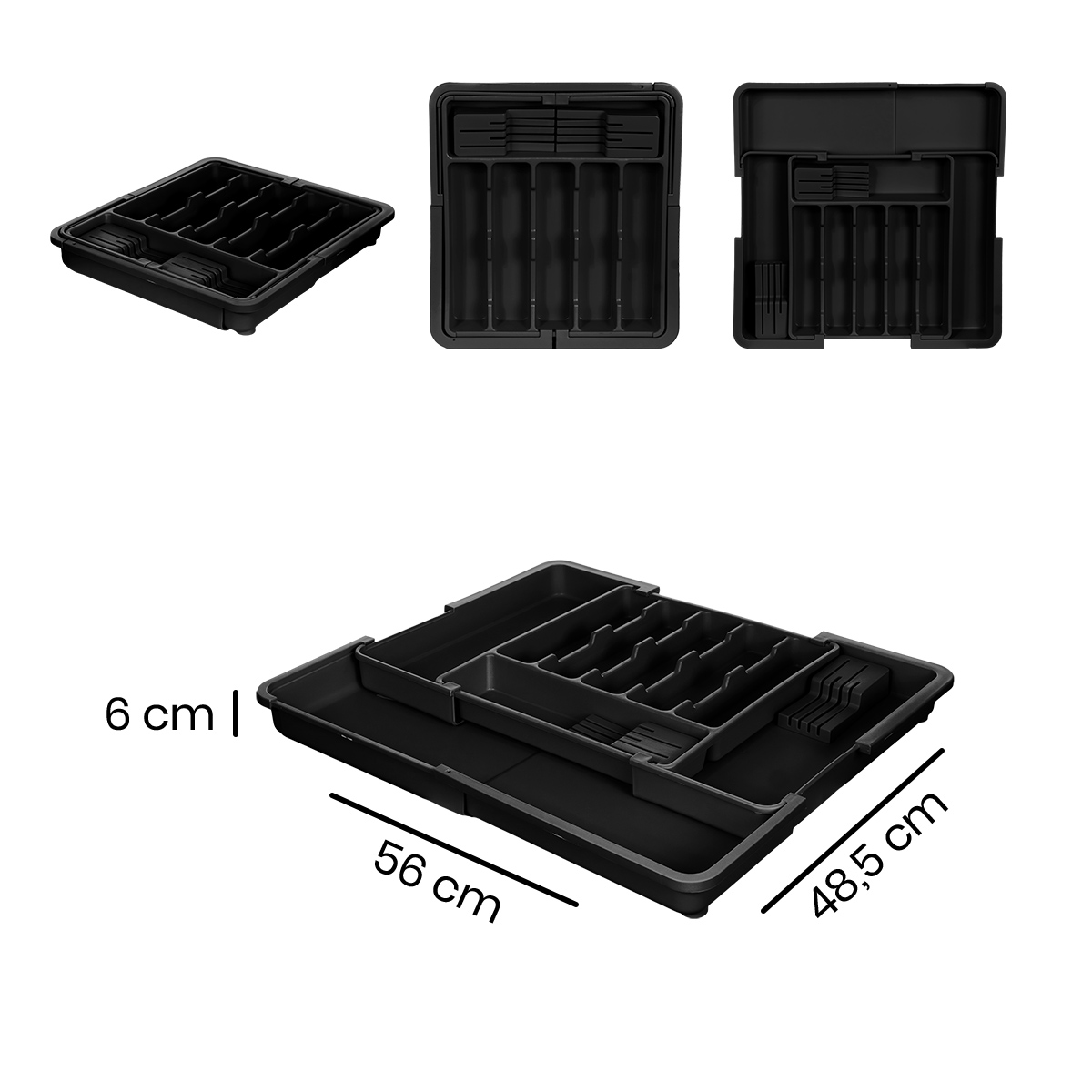 O Organizador de Gaveta Preto para Talheres foi desenvolvido para proporcionar praticidade, limpeza e elegância à cozinha. Além disso, seu design inteligente com 8 divisórias e 1 compartimento especial para facas garante uma disposição eficiente dos utensílios. Assim sendo, é perfeito para quem busca otimizar o espaço das gavetas e manter tudo sempre à mão. Ademais, o acabamento em PP resistente assegura durabilidade e fácil higienização.